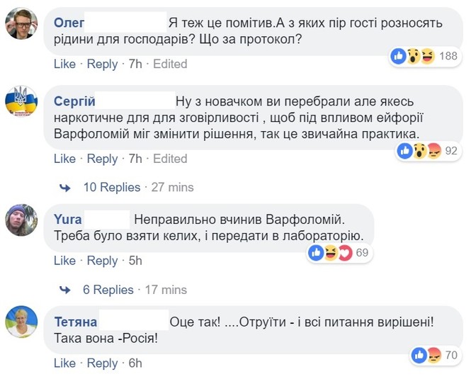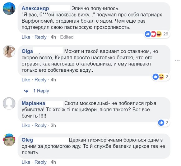 На сторінці «Українська Помісна Православна Церква» у Facebook заявили, що келих підносив співробітник Федеральної служби охорони Росії. Під відповідним постом у пабліку користувачі дійшли висновку, що могла йти мова про спробу отруєння.