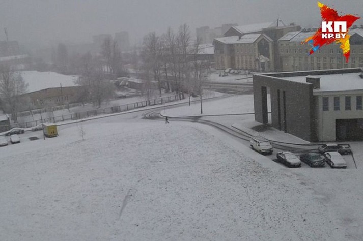 Також, за словами очевидців, сніг випав у столиці Білорусі Мінську.