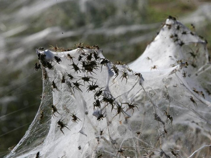 Хоча й здавалося, що павуки падають з неба, вони насправді переміщалися по величезній павутині, а експерти говорять, що це типово для регіону, коли спекотно і волого, тоді арахніди організовують тимчасову загальну павутину.