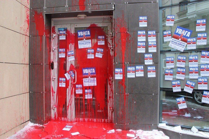 У Харкові офіс «Сбербанку» облили червоною фарбою