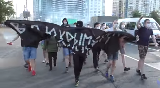 Близько 15 осіб у масках перекрили вулицю Стромінку, розгорнули банер «Волю кримським в'язням» і почали скандувати гасла.