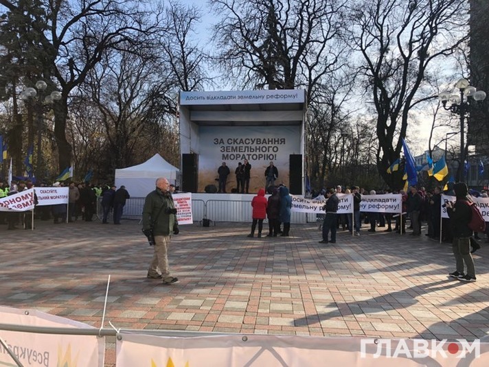 Сьогодні, 12 листопада, під Верховною Радою проходять мітинги прихильників та противників продажу землі. Як передає кореспондент «Главкома», перед парламентом зібралося біля півтисячі людей.