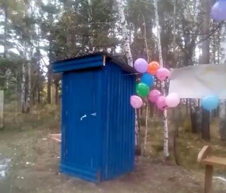У російському місті Ангарськ для водіїв автобусів було урочисто відкрито дерев'яний туалет. Про повідомляє Telegram-канал «Підйом».