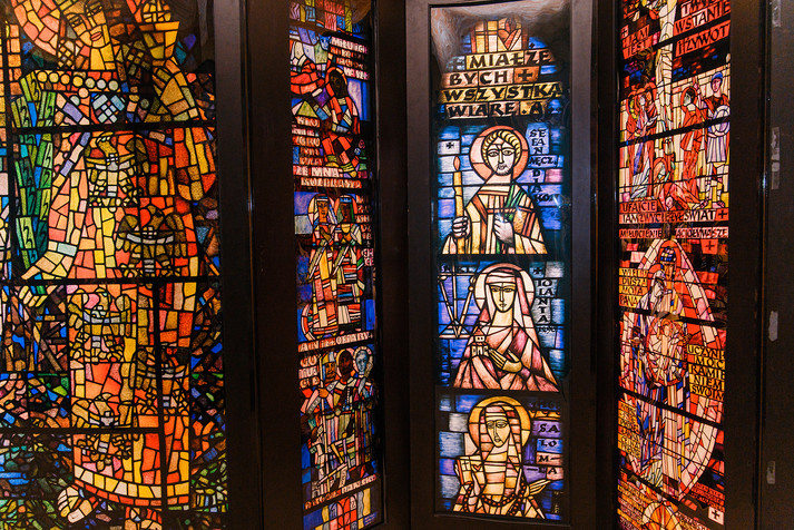 Автор представлених робіт Адам Сталони-Добжанський – це відомий художник, графік, реставратор пам'яток мистецтва, професор Краківської Академії мистецтв. Протягом життя створив понад двісті композицій для католицьких костелів, православних церков, храмів євангелістів. Творчість Адама Сталони-Добжанського довгі роки була забута через цензурну заборону, накладену комуністичним режимом в Польщі. Серед його робіт – фрески та мозаїки, але передусім – це вітражі, де представлено іконографію християнського мистецтва.