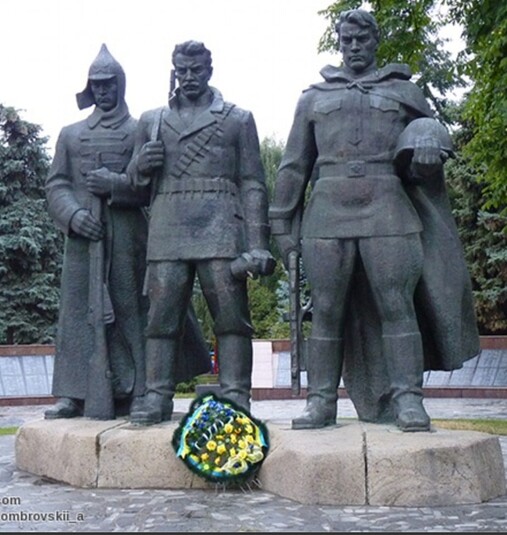 У місті досі непорушно стоїть монумент «героям громадянської війни», які катували і вбивали українців