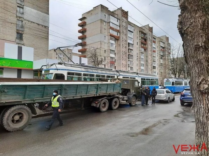 У Вінниці на вулиці Янгеля біля зупинки Некрасова сталась ДТП за участі та вантажівки та трамваю. Рух трамваїв через відповідну ділянку затримується до з`ясування обставин пригоди поліцією. Про це повідомляє видання Vежа.