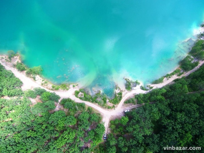 Згори затоплений кар'єр відкривається з іншої сторони. Так, з висоти добре видно, що імпровізований пляж на березі насправді є частиною дороги, яка заходила в середину видобутку. Саме через це утворилася мілина. Пейзажі навколо не залишать байдужими нікого.