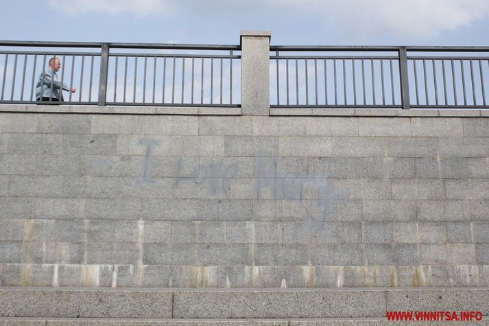 Дівчатам по 13 років, вони учениці однієї з вінницьких шкіл. Показують у бік арки й натякають, там «хтось» розмалював колони ще нахабніше.