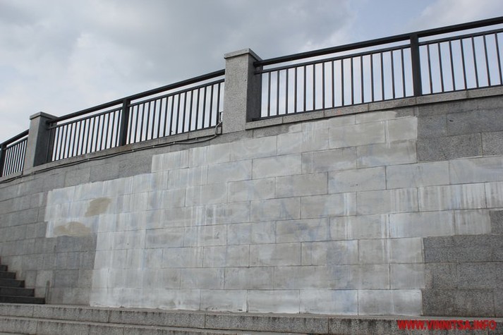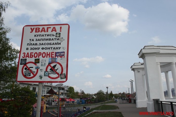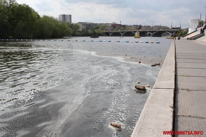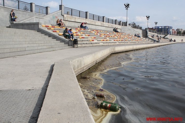 За п’ять днів по цьому набережна дещо змінилася. Пофарбовані після зими арки, розмалювали «мілкі» вандали. Біля водограю плавають десятками порожні пляшки з-під алкоголю. Поміж них, навіть велетенська дохла риба.