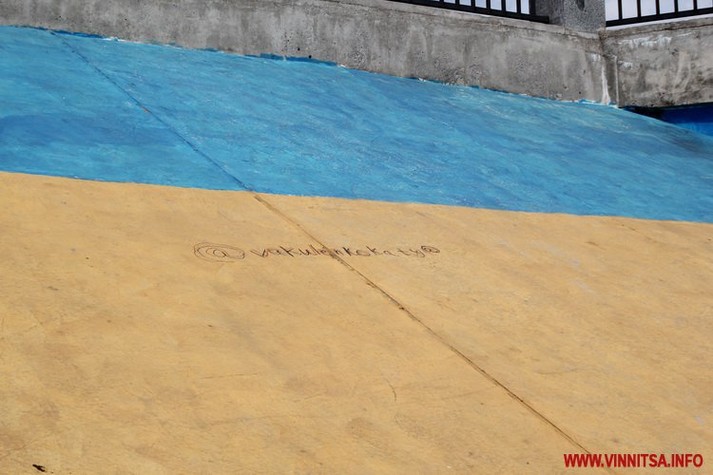 На частині бетонних жовто-блакитних плит кілька дівчат виводять фломастерами електронну адресу.