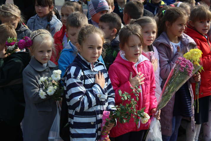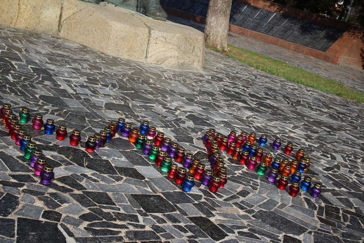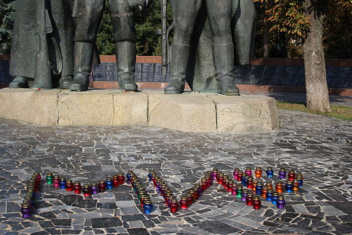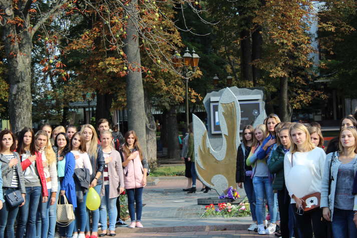 На честь Дня миру учасники акції читали патріотичні вірші, заспівали Гімн України, випустили в небо біло-жовті повітряні кульки та вшанували хвилиною мовчання усіх загиблих за мир і спокій в Україні. А біля Вічного вогню з лампадок виклали слово «мир».