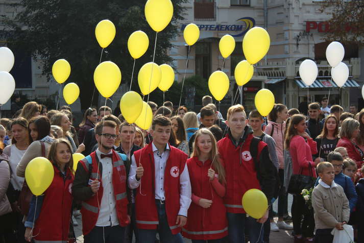 День миру у Вінниці: у небо запустили біло-жовті повітряні кульки (фото)