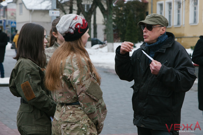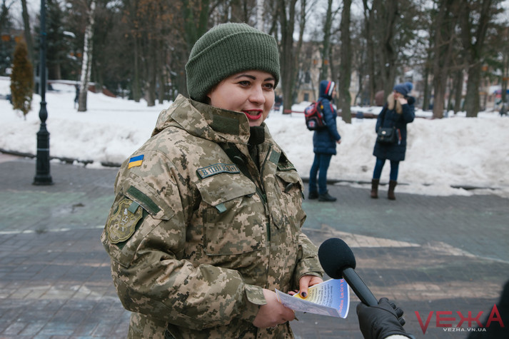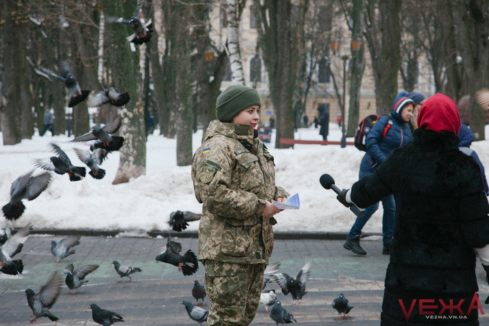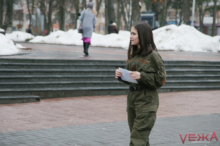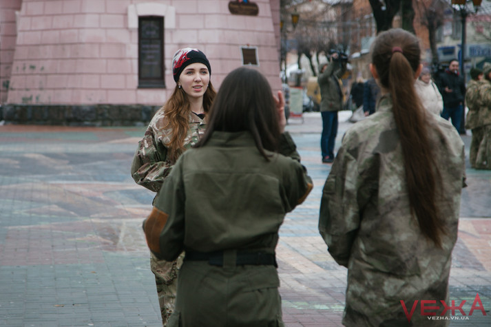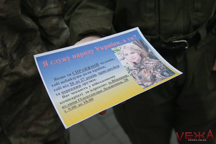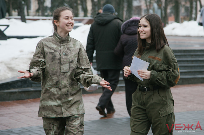 Вінницькі дівчата у військовій формі роздавали чоловікам «повістки»