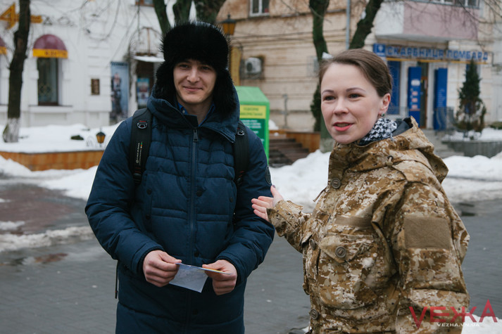 «Якщо чесно, ми не рахували, скільки роздали листівок, але доволі багато, – розповідала дівчина-медик Анна. – Я підійшла до одного хлопця та запитала чи він служив в армії, хлопець відповів що не служив та не збирається, тому що боїться. Однак, загалом реагують адекватно, кажуть, що подумають, прийдуть до військкомату».