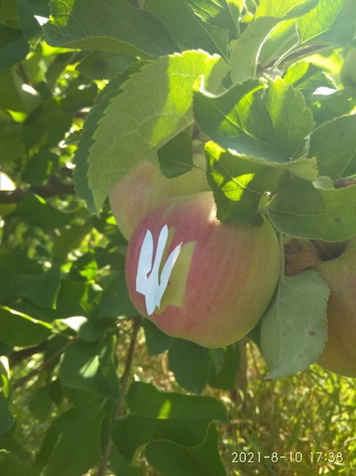 Вона зазначила, що їх родинному саду яблука із зображеннями вирощують упродовж останніх п’яти років. Щоб отримати ілюстрацію, на плоди наносять спеціальні наклейки, потім чекають, коли фрукти достигнуть.