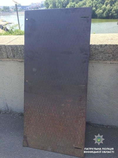Під час патрулювання, повертаючи з вулиці Київської на вулицю Соборну, поліцейські помітили двох осіб, які несли металеву пластину через центральний міст. Подія трапилась, 6-го липня, близько 11:30.
