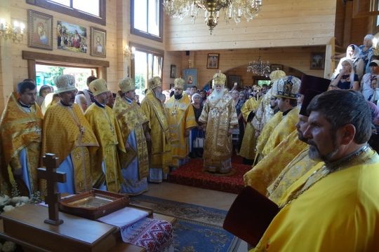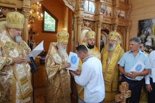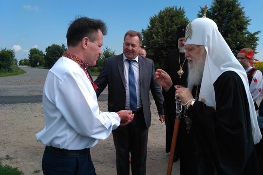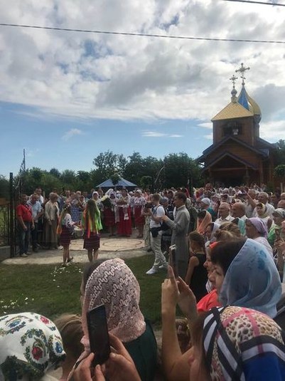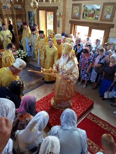 Духовного лідера зустрічали керівники району та численна громада вірян. Філарет провів урочисте богослужіння із чином освячення храму та звершив хресний хід з мощами.
