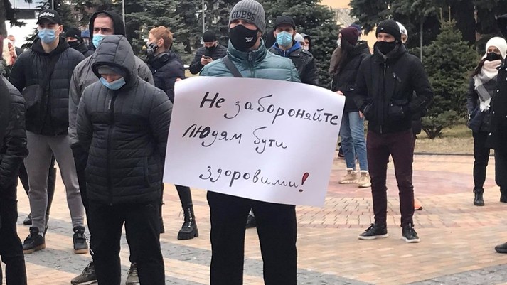 На протест учасники прийшли з плакатами: «Не забороняйте людям бути здоровими», «Фітнес має працювати», «Ковід живе лише у залах???», тощо. За підрахунками зібралося близько 50 людей.