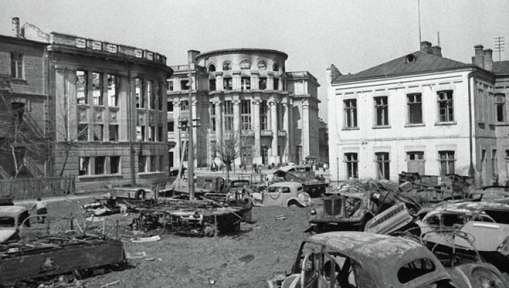 Коли місто було окуповане нацистами, у бібліотеці загарбники розмістили фельдкомендатуру. Каталоги, картотеки, облікові документи і значна частина фонду були знищені. Окупанти вивозили книги на берег річки і спалювали.