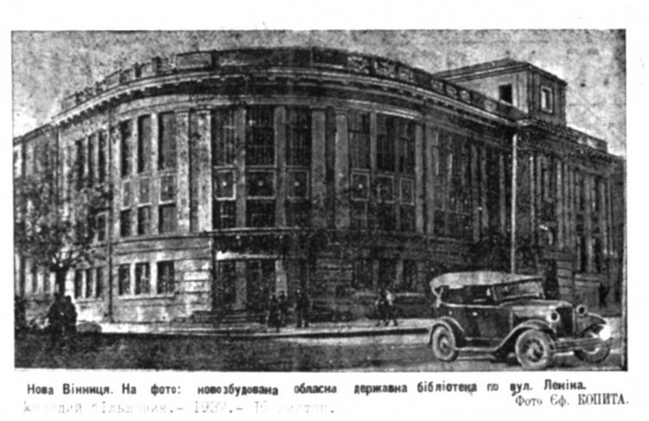 Вінницька обласна універсальна наукова бібліотека імені Тімірязєва була спроєктована Григорієм Артиновим