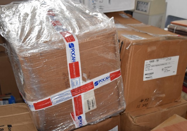 Це – 11 коробок медичних засобів для військових. У вантажі – лампи-детектори для інтубації стравоходу, мішки для біологічно небезпечних відходів, рукави для вимірювання тиску, простирадла для обеззаражуваної завіси, бавовняні ковдри тощо.