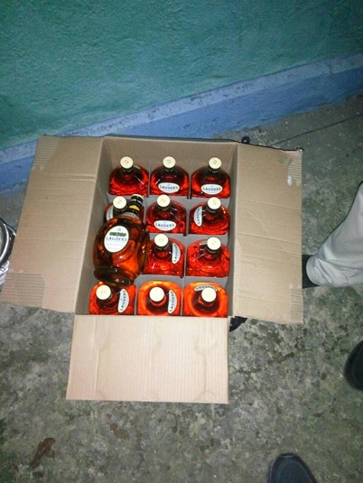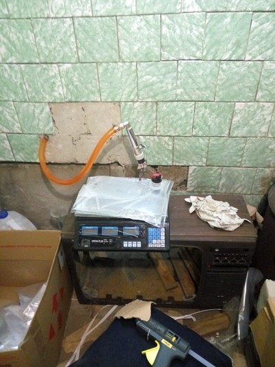 Під час обшуку виявлено і вилучено 6 пластикових бочок заповнених рідиною з характерним запахом спирту орієнтовним об’ємом 200 літрів кожна, 2 пластикові бочки ємністю 200 літрів, наполовину заповнених рідиною з характерним запахом спирту, 53 пластикові ємності об’ємом по 5 літрів кожна із водно-спиртовою сумішшю, 11 ємностей типу "bag in box" по 10 літрів кожна заповнених водно-спиртовою сумішшю, алкогольні напої іноземних брендів в кількістю 78 пляшок по 1 літрі кожна, а також банківські платіжні картки, чорнові записи з замовленнями, крани, шланги, насоси, пістолет для склеювання, електроні ваги, фільтри для очистки води.