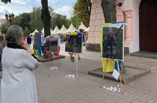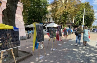 На картинах, які були виставлені на території Преображенського собору, поруч із пам’ятними дошками, на яких викарбувані імена загиблих вінничан, можна було побачити, зокрема, Катерину Поліщук – «Пташку» з «Азовсталі», Олександра Мацієвського – воїна, який був розстріляний окупантами за слова «Слава Україні», головнокомандувача Збройних Сил України Валерія Залужного та інших героїв України.