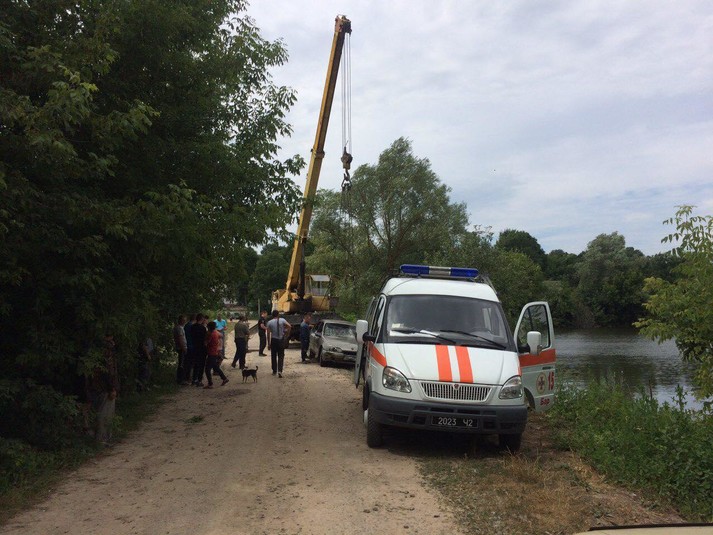 7 липня рятувальники із залученням допоміжної техніки місцевого підприємства, провели аварійно-рятувальні роботи по витягуванню автомобіля із водойми.