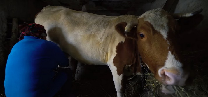 «Прокидаюся я о 5:30 годині. Йду розпалюю грубку, грію водичку, потім йду доїти корівку. Перед цим, даю їй сіна. Потім проціджую молочко і на 7:30 годин несу на молочарню. Колись ще свекруха мене навчила, що треба три рази хрестити черево корові», – каже місцева жителька Людмила Груба.