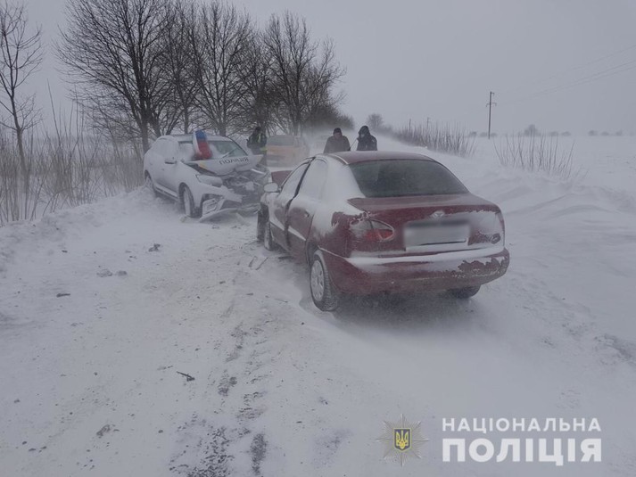 «Аварія сталась близько 14:20 неподалік села Гордівка. Попередньо, автомобіль «Део Ланос», яким керував 29-річний місцевий житель на засніженій дорозі занесло на зустрічну смугу руху, де сталось зіткнення зі службовим автомобілем поліції «Рено Логан». У результаті аварії травмувались четверо людей. Наразі їх оглядають лікарі. Водії обох транспортних засобів освідувані. Вони тверезі», – повідомили в поліції.
