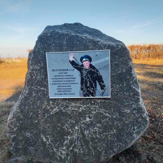 На Вінниччині висадили кілька десятків яблунь і встановили пам’ятний камінь у пам’ять про льотчика Дмитра Шкарбуна, який загинув на війні на Донбасі.