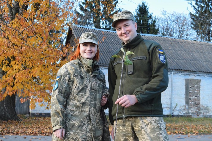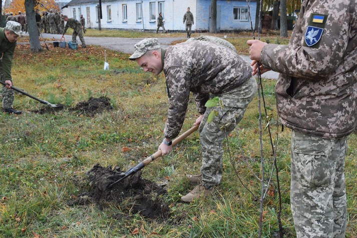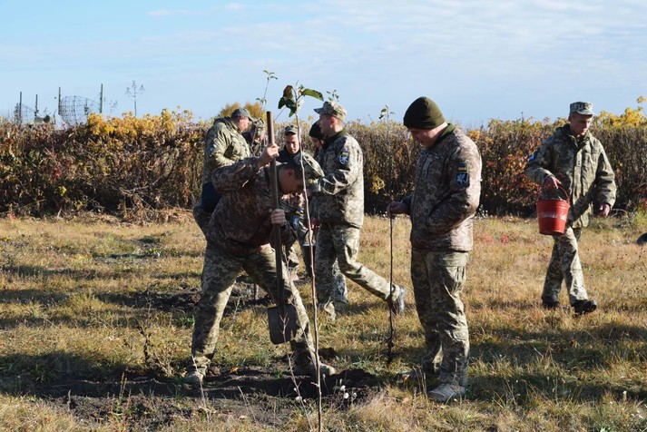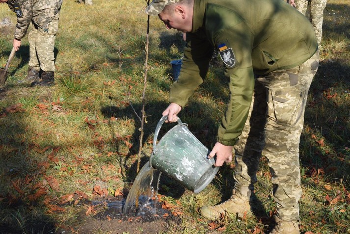 Військовослужбовці висадили кілька десятків яблунь та встановили пам’ятний камінь із нагадуванням про приклад мужності і героїзму офіцера, який загинув під час російсько-української війни.