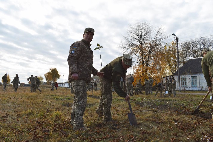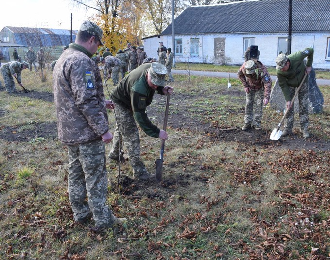 Військовослужбовці висадили кілька десятків яблунь та встановили пам’ятний камінь із нагадуванням про приклад мужності і героїзму офіцера