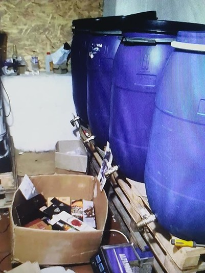 В ході обшуку правоохоронці виявили близько 1500 літрів сурогатного алкоголю, розфасованого у тетрапакети та п'ять пластикових ємкостей зі 1125 літрами спирту.