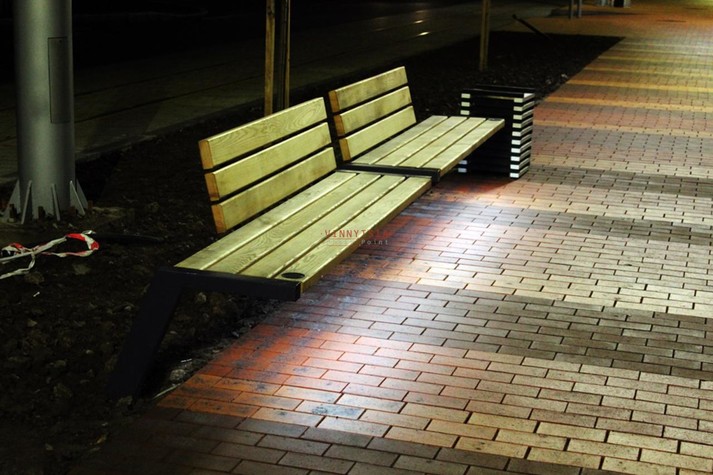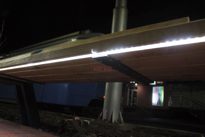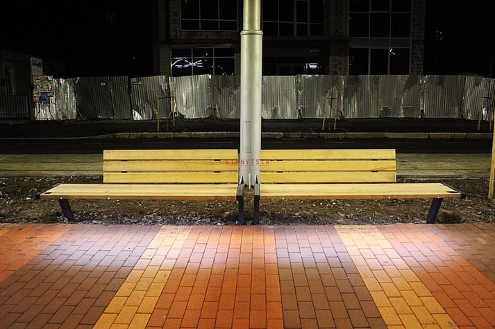 Нещодавно підрядна фірма обладнала під місцем для відпочинку вінничан, а саме під новими дерев'яними лавками - нові світлодіодні підсвітки.