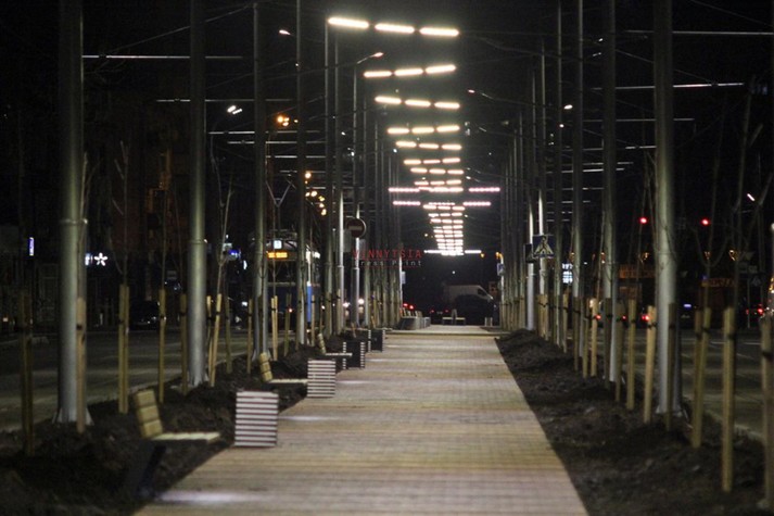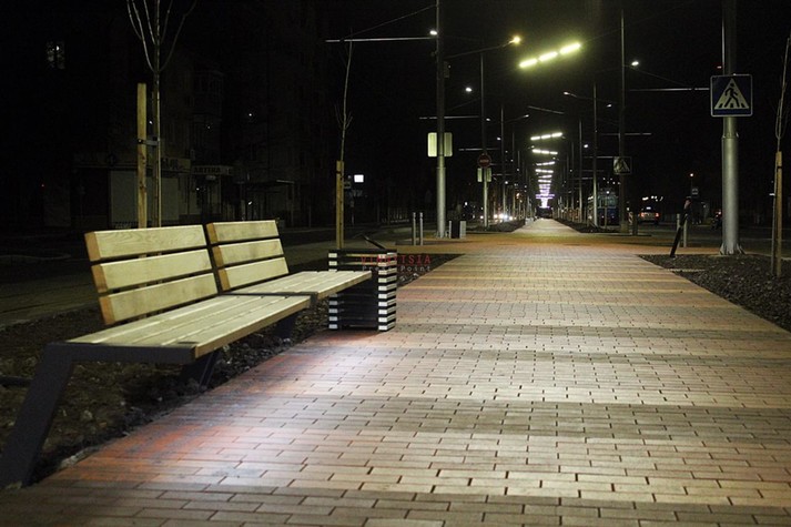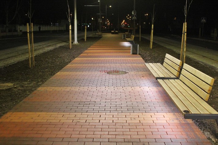 У Вінниці на вулиці Замостянській вздовж алеї під лавками для сидіння встановили підсвітку.