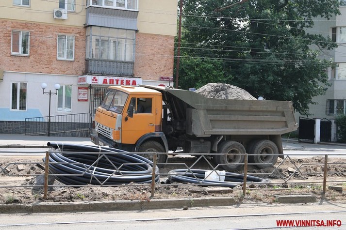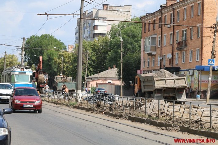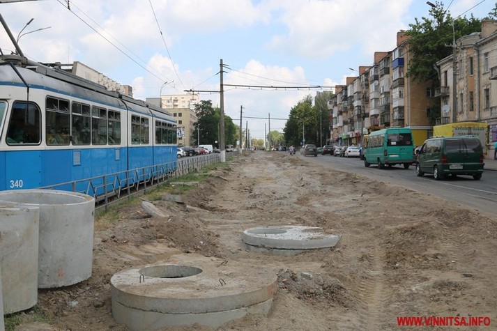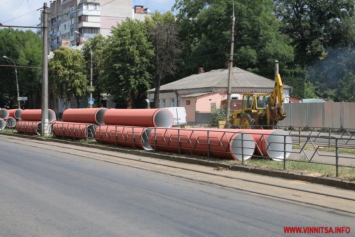 У Вінниці триває реконструкція вулиці Замостянської. Проект розрахований на два роки, цьогоріч одновлять тільки першу частину. На ній вже повністю демонтували тротуар, а також зрізали всі дерева. Сьогодні працюють над встановленням дощової каналізації.