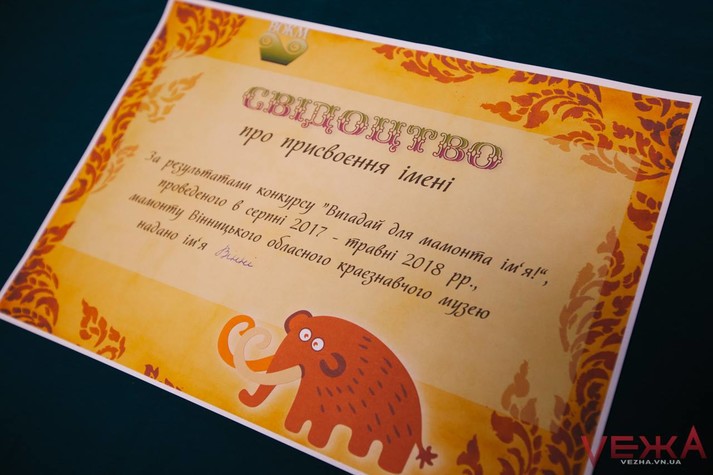 Кістяк мамонта, що представлений у Вінницькому краєзнавчому музеї нарешті отримав своє ім’я.