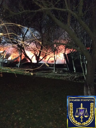 «В металевому ангарі речового складу площею 200 кв. м виникла пожежа. Вогнем знищене майно, яке зберігалось у будівлі: близько 1100 кевларових шоломів, 800 бронежилетів, 1500 спальних мішків, 100 польових наметів, понад 1000 одиниць польової форми, 1400 костюмів захисту від води та інше. Попередня сума збитків - 10,5 мільйонів гривень. Даних про постраждалих або загиблих немає», йдеться у повідомленні.
