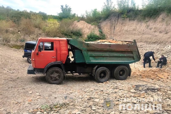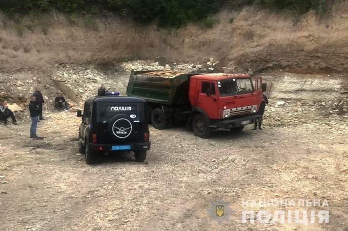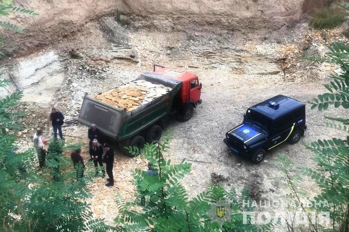 «Автомобіль Камаз, завантажений пісковиком, вилучений та поміщений на арештмайданчик. Поліцією розслідується провадження за ч. 4 ст. 240 Кримінального кодексу України (Порушення правил охорони або використання надр).