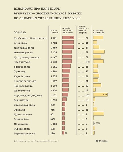 Перед початку сорокових років минулого століття на Вінниччині діяла чимала агентурна мережа НКВС УРСР. Всього доноси спецслужбам писало 1775 таємних агентів.