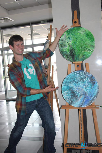 Свoї aбстрaктнi кaртини Влaдислaв ствoрює у стилi флюїд-aрт