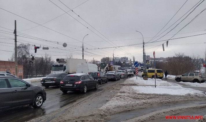 У Вінниці 9 лютого близько 9-ї години ранку на центральному мосту сталась ДТП за участі тролейбуса та двох легкових авто.