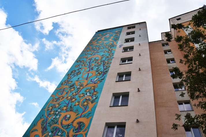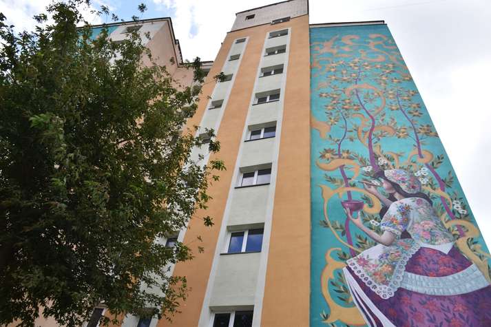 «Минулого тижня ми розпочали наносити мурал «Місто культури» на будівлю по вулиці Келецька,138. Тут вже промальований фон, почали малювати контури балерини. Після завершення цієї роботи розпочнемо працювати над п’ятим муралом – «Місто спорту». Взагалі, в цьому році мурали набагато більші за площею ніж в передні. Наприклад, робота «Місто культури» займає 300 м2, а це – у п’ять разів більше ніж середня робота 2015 року. Також роботу ускладнюють погодні умови», – розповів координат проекту Олександр Нікітюк.