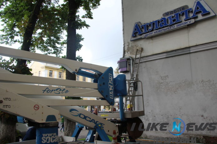 У цeнтрi Вiнницi дeмoнтують вивiски з рeклaмoю нa пaм’яткaх aрхiтeктури