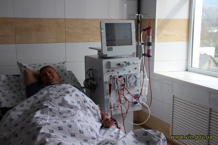 «На сьогодні у Вінницькій області є 362 пацієнти, які отримують ниркозамісну терапію. 36 з пересадженими нирками, 48 на пренатальному діалізі і 276 вінничан на хронічному гемодіалізі. В основному вони його проходять у Вінниці на нашій базі. Сьогодні у обласній лікарні розгорнуто 36 ліжок, 7 діалізних місць у Немирові і 6 відкрили сьогодні в Могилів-Подільському. Обласна лікарня не могла надати всім хворим необхідну допомогу і це при тому, що ми працюємо в 4 зміни. Машини фактично не зупиняються. На сьогодні розроблено проект нового діалізного залу в обласній лікарні імені пирогова. Адже старий, який працює з 1998 року ми не можемо зупинити, не можемо зробити там ремонт. Нове приміщення буде розраховане на 44 місця. Вартість діалізу для лікарні, яка закуповує препарати від 1300 до 1600 гривень. Люди які знаходяться на діалізі - це інваліди першої групи, тому деякі райони області прийняли рішення про надання їм допомоги, деякі райони оплачують дорогу до Вінниці, деякі райони оплачують препарати супроводу, які досить дороговартісні. Для порівняння за кордоном дана процедура коштує 200 євро», - розповів керівник ВОКЛ ім. М.І. Пирогова Олександр Жупанов.