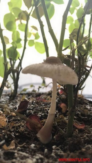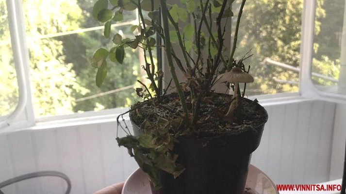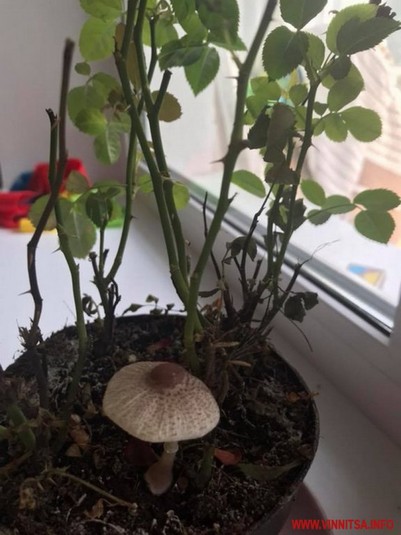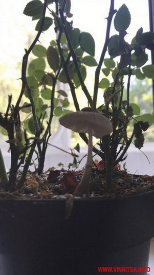 1 серпня вінничанка Крістіна Коваленко помітила у своєму хатньому вазоні гриб, який виріс у горщику з трояндою