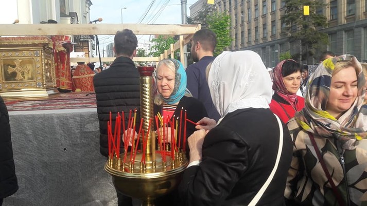 У Вінниці кілька сотень вірян Московського патріархату провели акцію поруч зі собором ПЦУ