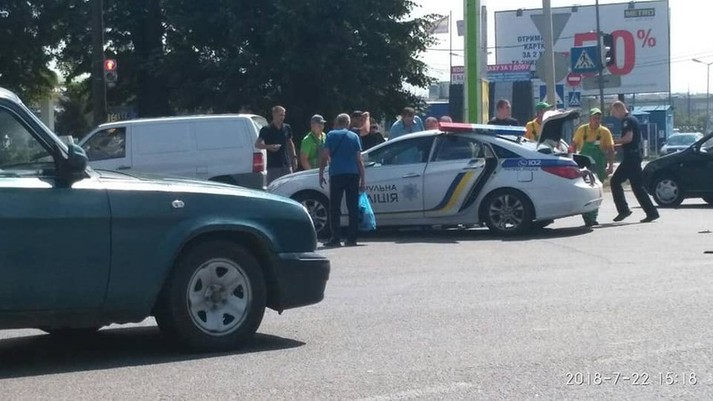 У Вінниці маневр поліцейського автомобіля закінчився ДТП (фото, відео)