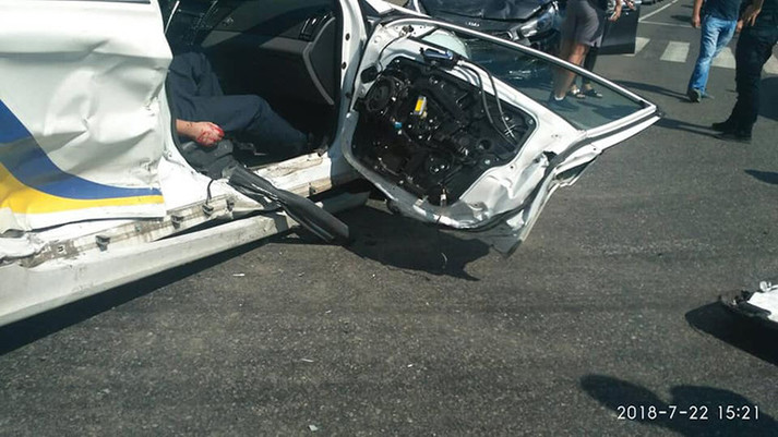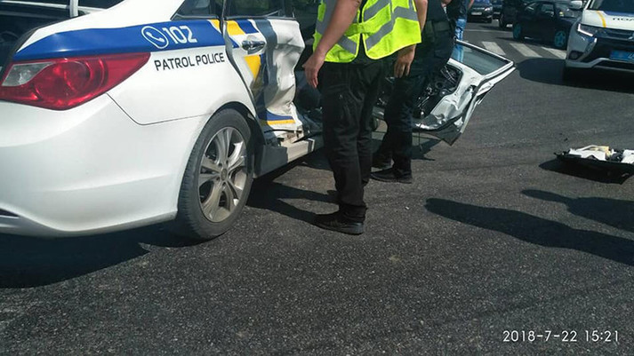 Відеокамери зафіксували момент зіткнення патрульного автомобіля з іншою автівкою